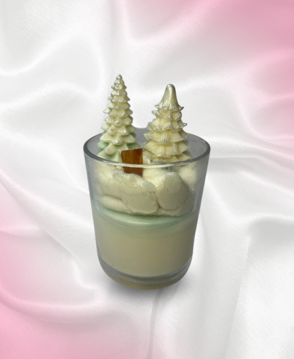 A crisp, clean fragrance of pinewood that fills the air with the refreshing scent of a winter garden, creating a festive ambiance.